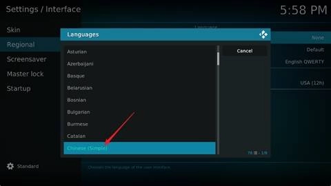 6、在弹出的语言选择窗口里找到“Chinese(Simple)”。