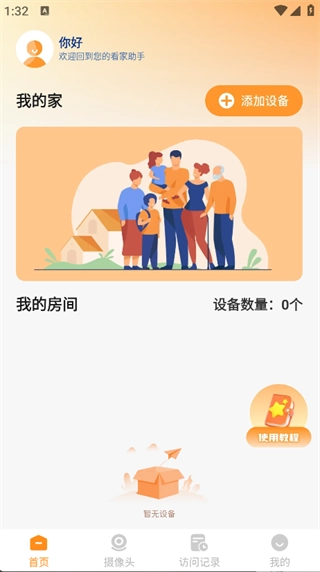 2. 在首页即可看到添加设备、使用教程等功能;