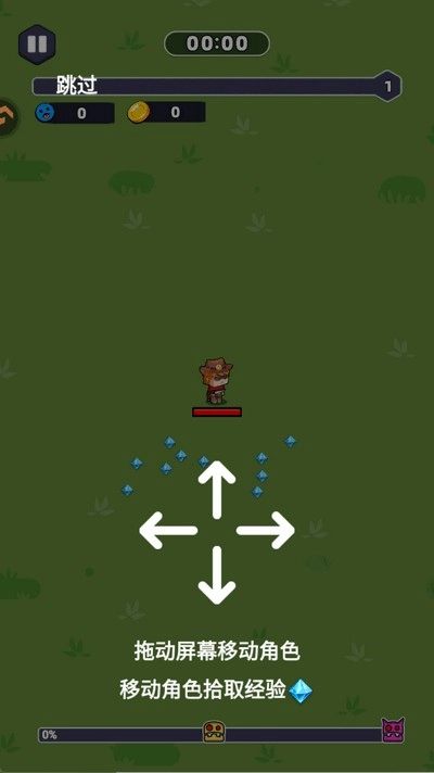 2、通过指尖的滑动来操控角色移动,收集经验值并击败敌人。