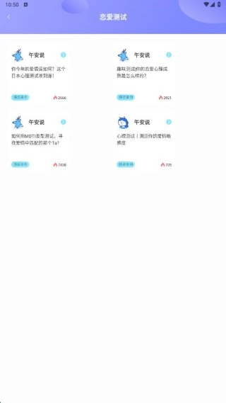 在交友页面,我们还能看到一些有趣的神回复,学习如何处理社交关系,同时查看自己的情感运势。