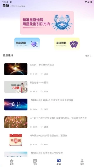 4、星座页面设有速配功能,能帮你了解自己与哪个星座的异性最为契合。