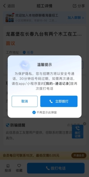 可以随时查看联系方式,在线就能搞定招工找活的事儿,老板招工更便捷,工友找活更省心。