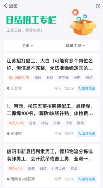 海量招工信息,超多找活工人,高效匹配老板与工人信息,