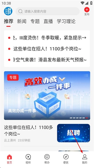 在云上滑州首页点击我的选项,进入个人中心页面。