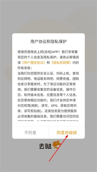 在用户协议与隐私保护的弹窗界面,点击“同意”按钮后,即可进入应用首页。