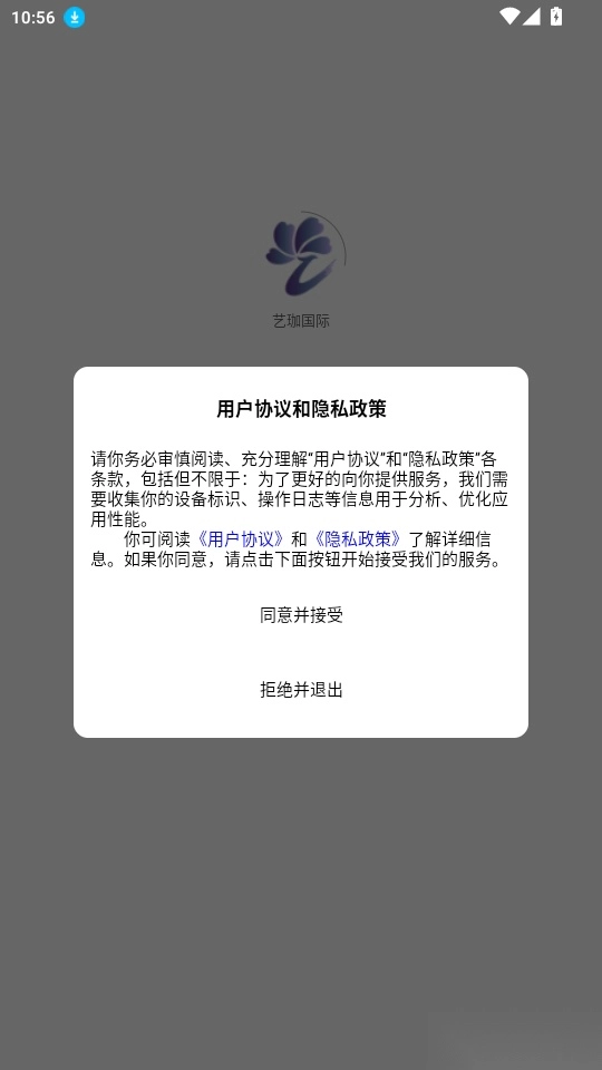 1. 打开软件后阅读《用户协议和隐私政策》,点击“同意并接受”按钮进入下一步。