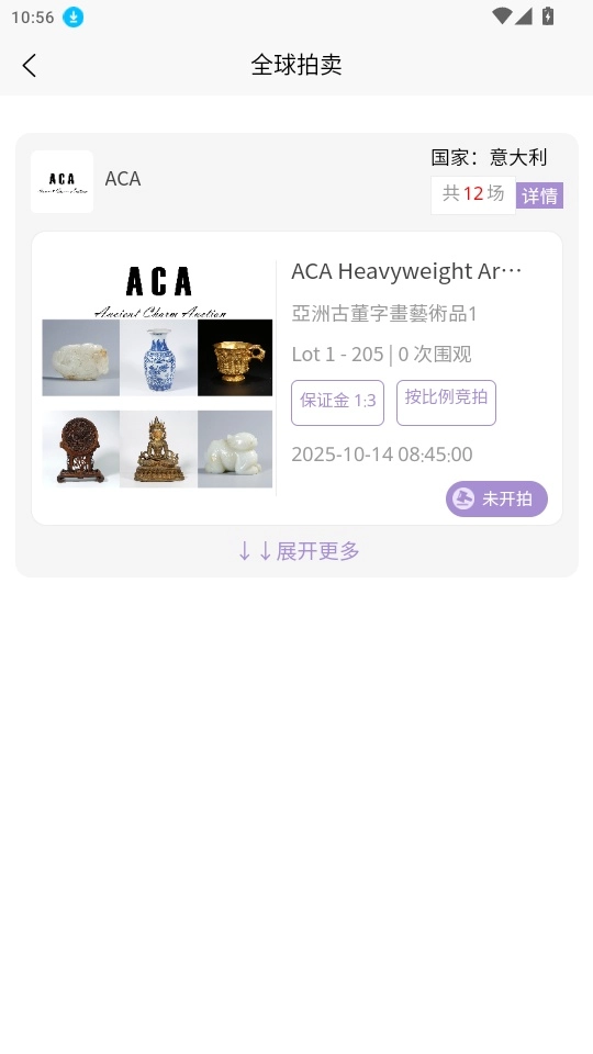 3. 进入全球拍卖详情页面后,选择你感兴趣的拍卖场并点击进入。