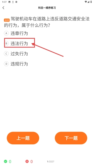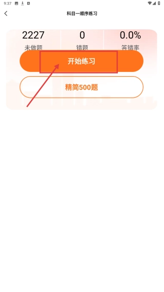 在科目一的顺序练习页面中,点击“开始练习”按钮,即可进入题目练习的环节。
