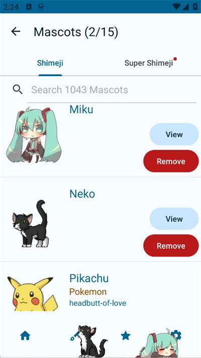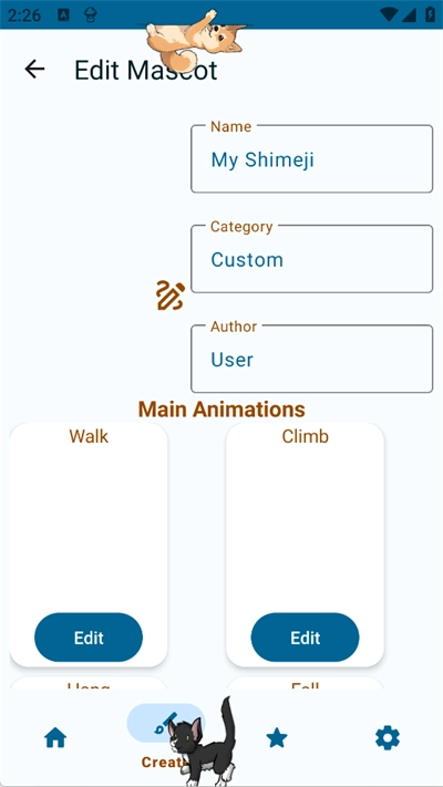 shimeji手机桌宠是一款十分有趣的手机桌面应用,在这里你能看到不少Q萌可爱的桌宠,像初音未来、柴犬之类的都有。该软件还允许用户自行创作桌宠,你可以把自己喜欢的萌宠图片上传到软件里来进行创作。