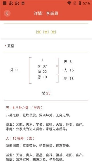 8、还能够查看名字的五格、八卦数等方面的解析,以此进一步知晓名字所蕴含的运势情况。