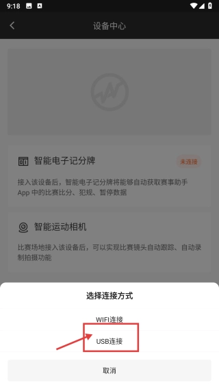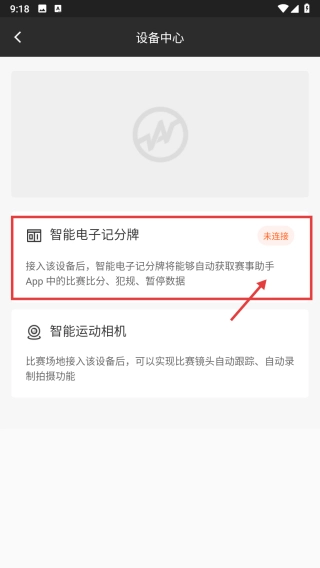 在设备中心页面,点击智能电子记分牌的条目,就能进入连接方式的选择页面。