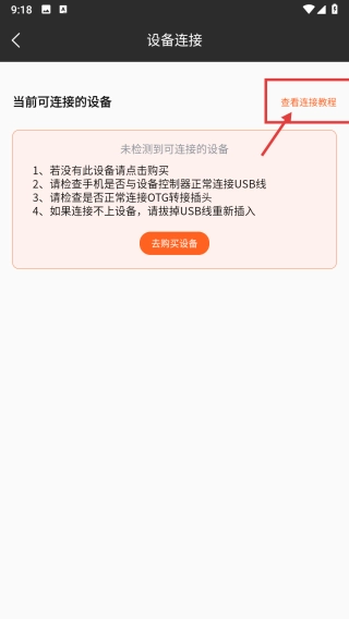 在设备连接页面,点击“查看连接教程”选项,即可获取设备连接的相关指导。