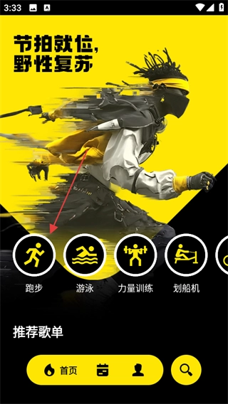 打开Jymo应用,点击“跑步”选项,就能进入到与跑步音乐相关的页面。