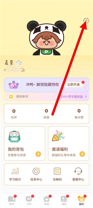 打开熊猫在学,点击底部我的,进入个人页面。