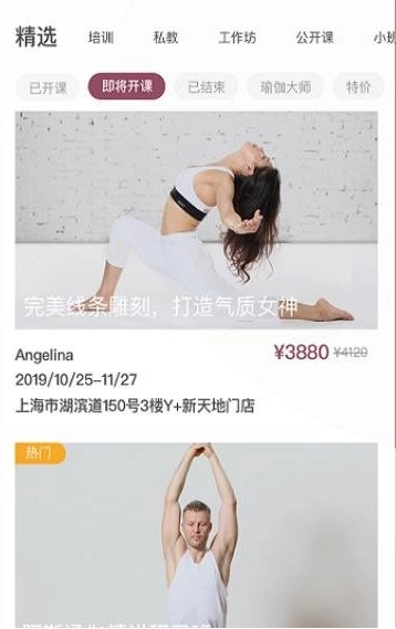 2、用户就可以找到自己感兴趣的瑜伽课程了;