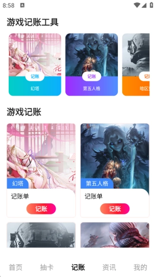 在记账页面提供了多样化的记账服务,能针对不同游戏实现快速记账功能。