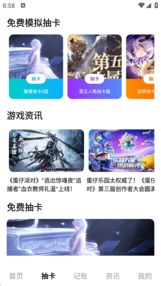 在抽卡界面,你可以体验免费的模拟抽卡玩法,还能获取最新的游戏资讯。