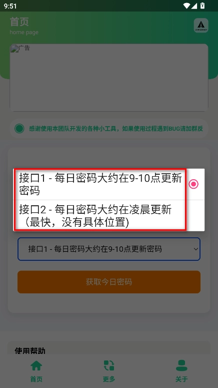 2.可以看到本软件提供了两个获取密码的接口,大家可根据需求自由选择。