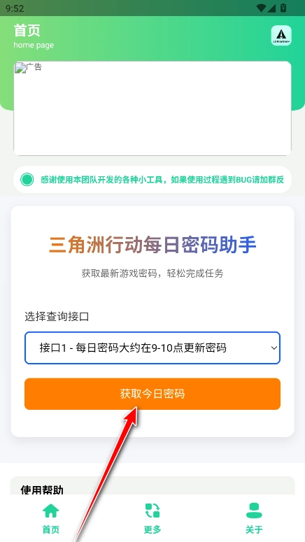 2、支持今日密码获取功能,点击对应按钮就能便捷获取三角洲行动当日的游戏密码。