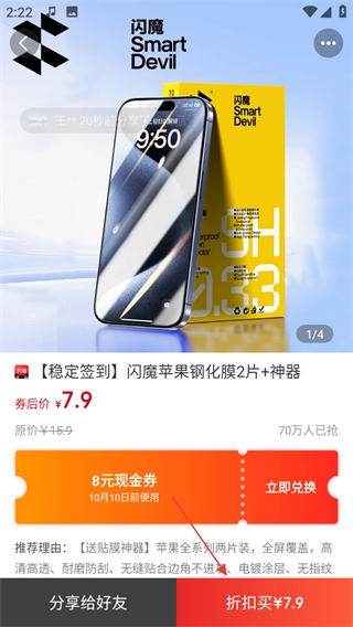 在商品详情页面,点击折扣买,即可购买该手机壳。