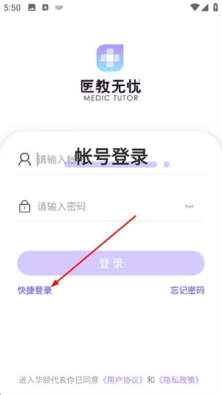 在账号登录页面,找到并点击快捷登录选项,即可进入快捷登录页面。