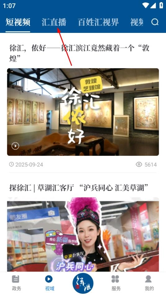 在视域页面点击顶部的汇直播按钮,进入直播合集。