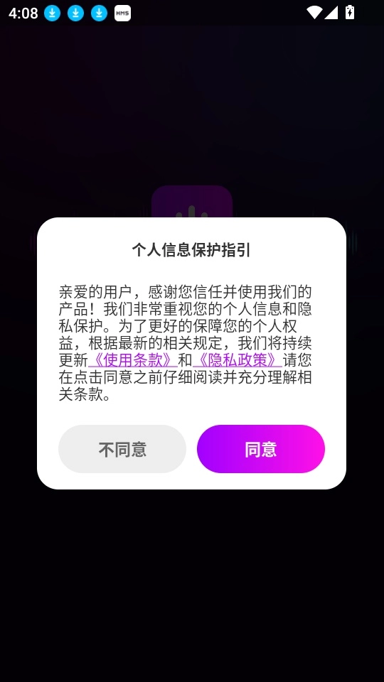 1、首先打开应用点击“同意”按钮来进入中。