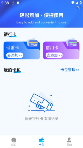 点击卡包后,就能添加个人的卡,这样管理起来会更方便。