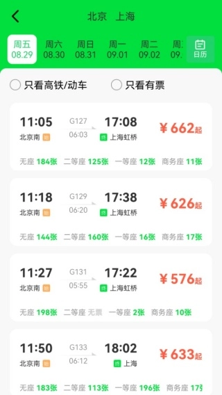 支持余票监控功能,可实时追踪车票剩余数量,帮助用户及时把握购票时机,防止错过心仪车次,从而提高购票成功率。