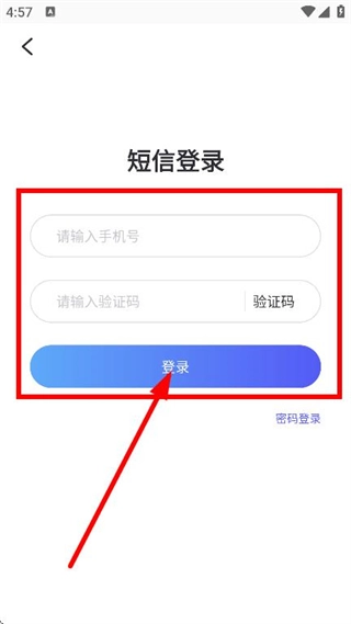 4、进入短信登录页面,填写好手机号与验证码,点击登录按钮,即可完成登录流程。
