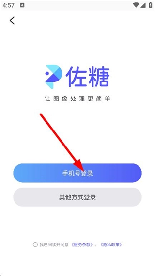 3、在登录方式选择界面,点击手机号登录选项,跳转至短信登录页面。