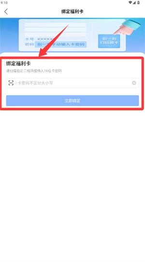 2、若需要绑定福利卡,可在绑定页面输入卡密,然后点击立即绑定按钮。