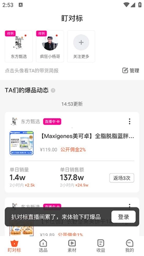 4、盯对标功能,能够助力你剖析其他主播的带货状况。