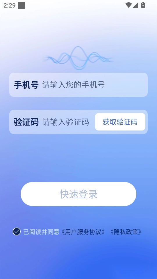 2. 在登录页面输入手机号和验证码,然后点击“快速登录”按钮即可进入程序。