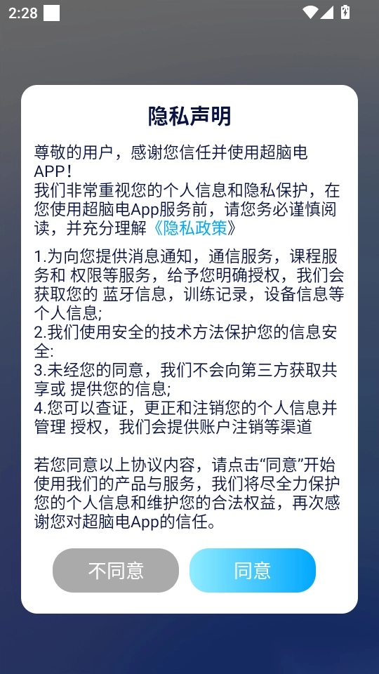 1. 第一步是打开软件,仔细阅读“隐私声明”,之后点击“同意”按钮进入系统。