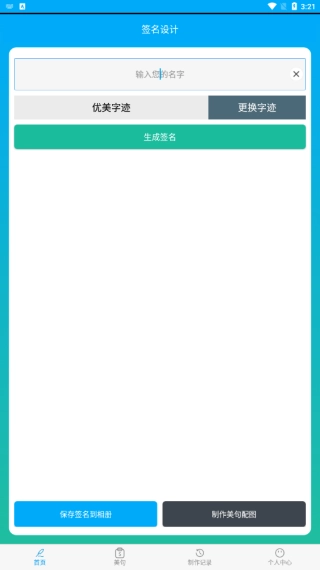 首页推送的签名设计功能很丰富,只需输入内容,就能挑选不同的字迹。