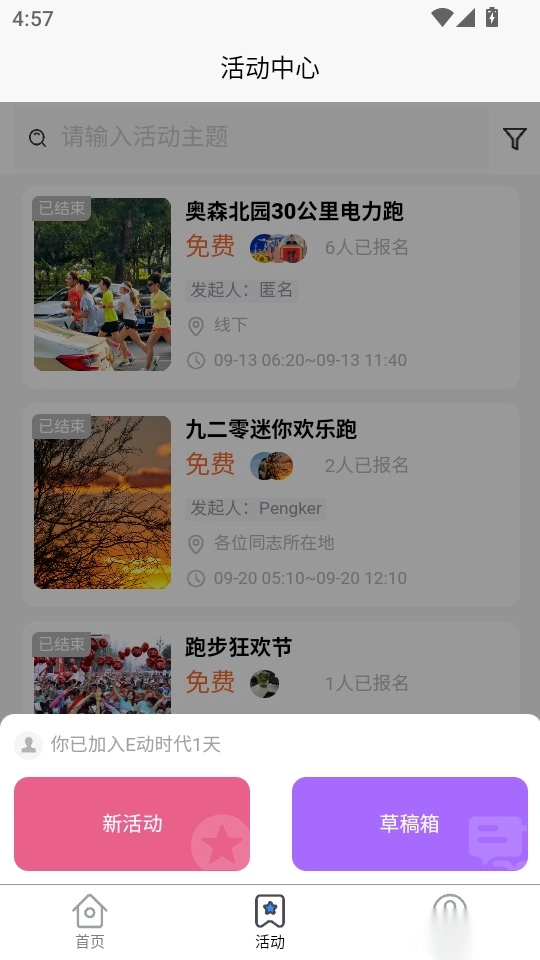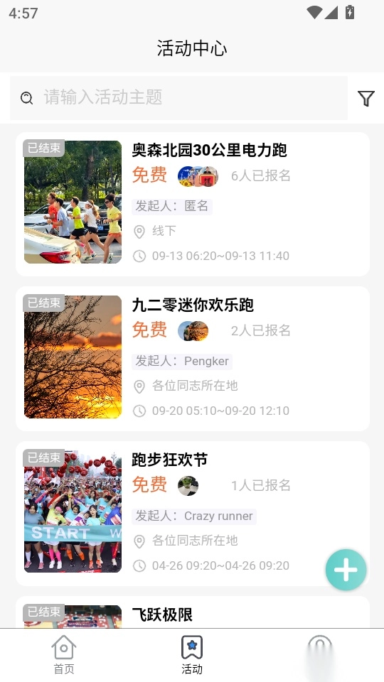 可以查看大量热门运动活动合集,查看最新的报名;