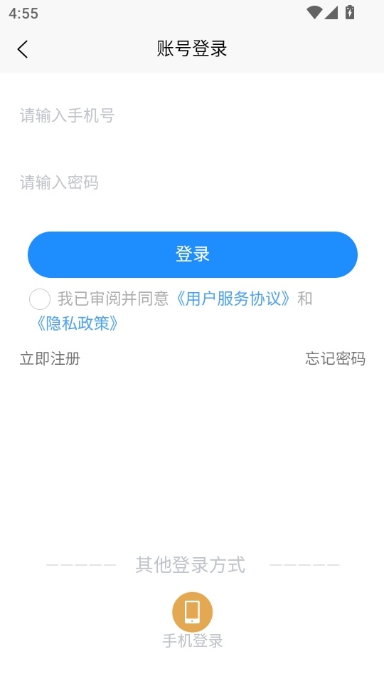 2. 随后输入手机号码和密码,点击“登录”按钮即可进入程序