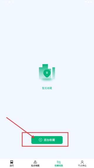 在收藏线路页面,点击添加收藏按钮,进入搜索界面准备查找线路。