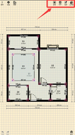 3、选好户型后,点击右上角的按钮就能进入户型图的绘制界面。