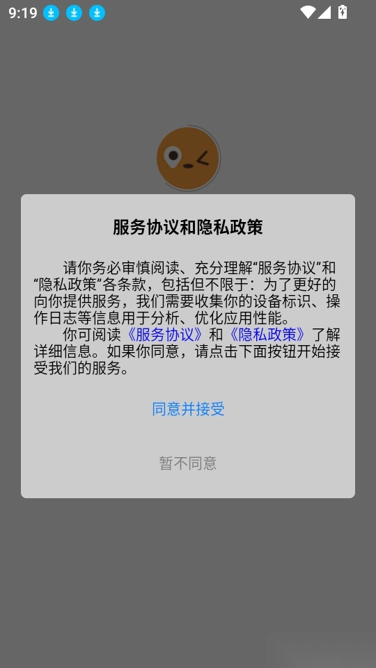 1、首先打开应用点击“同意并接受”按钮进入中。