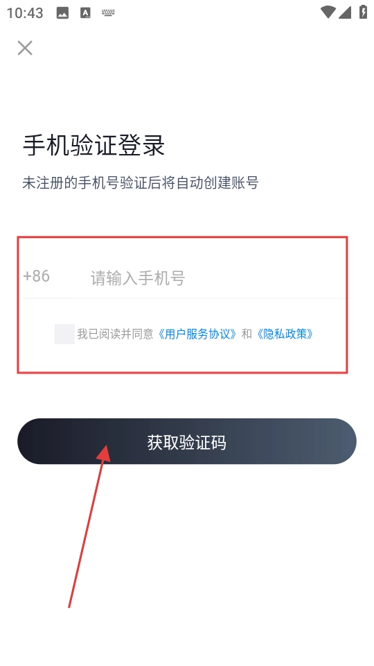 在登录页输入手机号,勾选协议后点获取验证码。