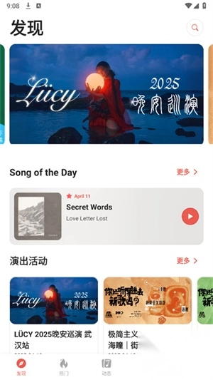 拥有海量的音乐库,其中大约存有上百万首正版歌曲,并且每天都会更新新的专辑以及独立音乐人创作的作品。 2. 搭载智能推荐系统,此系统能够依据您日常的听歌习惯,向您推送契合您个人音乐喜好的小众优质音乐。 3. 具备聚合演出活动信息的能力,会实时对全国范围内Livehouse、音乐节等演出消息进行更新,同时支持一键购票功能。