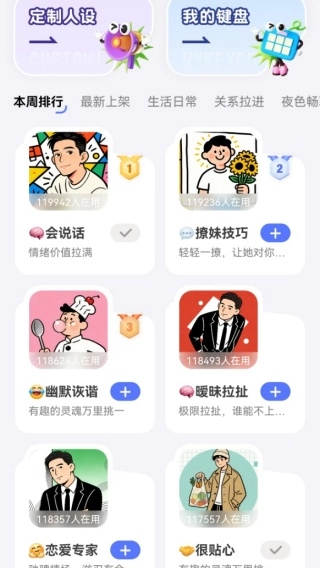 点击“人设”选项,既能够自行定制专属人设,也可以借助各类不同的分类来挑选合适的人设。