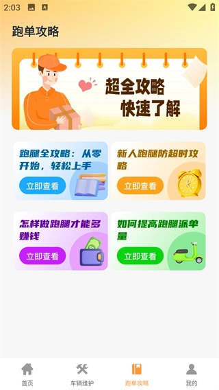 4、跑单攻略板块中还包含各类实用攻略,能够助力你增加收入。