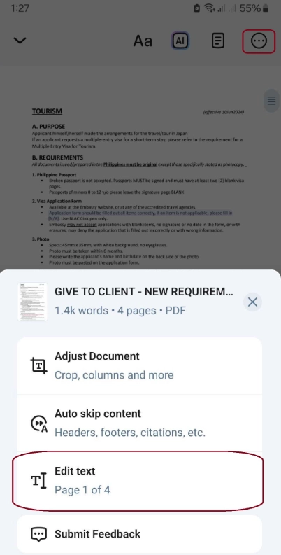 在Speechify应用里,打开你资料库中的任意一份文档