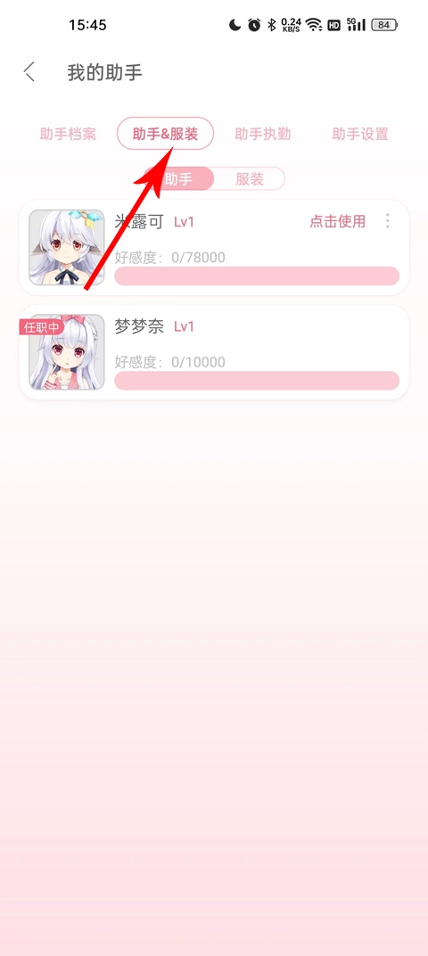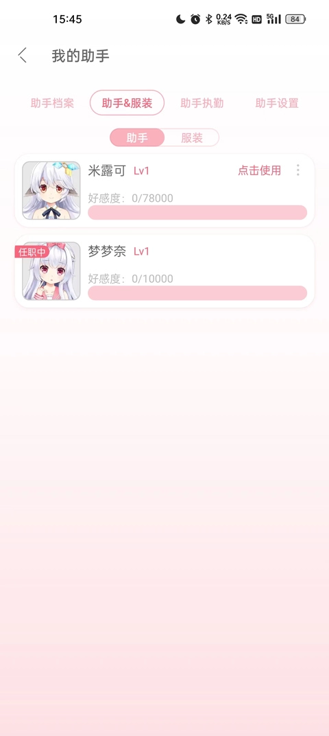 5、进入助手服装界面后,会展示出你所拥有的全部二次元角色,若想使用某个角色,点击该角色即可完成切换。