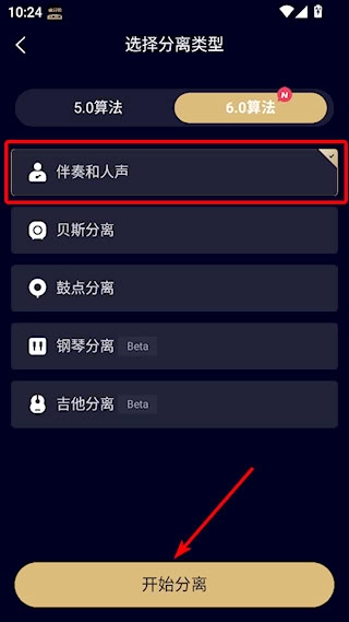 3、在分离模式下选择同时提取伴奏和人声的选项,然后启动处理进程。