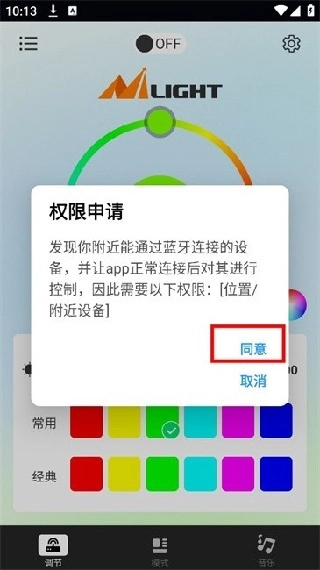 请授予软件位置权限,这样才能搜索到附近可连接的设备。