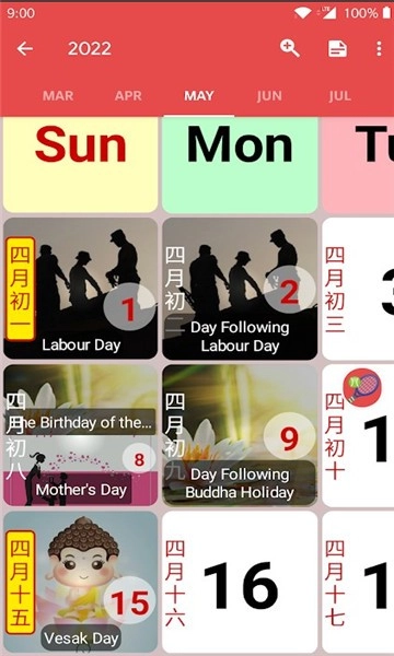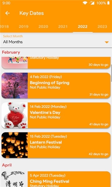 3、整体界面设计简洁,日历功能支持显示节气、节假日以及重要日子等信息。